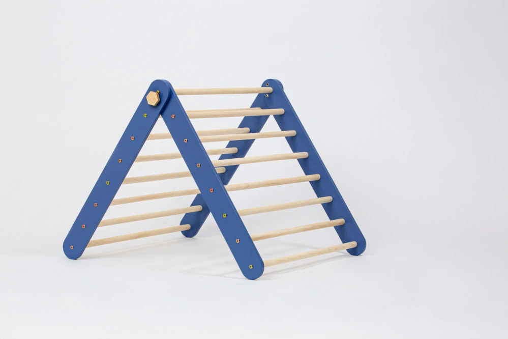- Tento produkt lze použít jako lezecký trojúhelník pro tradičnější sadu aktivit nebo jej lze rozložit a pověsit na zeď, aby se z něj stal švédský žebřík. Kromě těchto dvou možností existuje nespočet dalších způsobů, jak jej použít - jediným omezením je představivostProstorově úsporný design