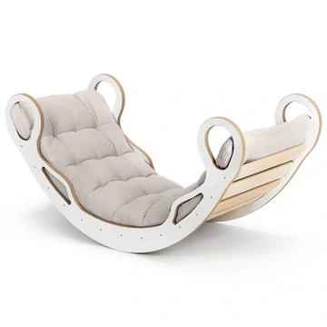- Dřevěná houpačka s polštářem - bílá, šedý