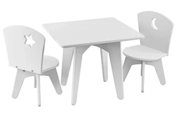 - Dřevěný dětský stůl BASIC a židle 2ks - hvezda, měsíc, bílá