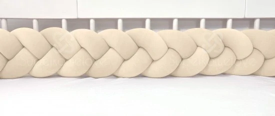 Je vyroben s vysokým zpracováním; mantinel je vyplněn nadýchanými antialergenními silikonovými kuličkami a je vyroben z 96% bavlny nejvyšší kvality o gramáži 150g a 4% elastanu. K copu jsou připevněny ozdobné barevné šňůrky, které slouží k přivázání copu k postýlce, aby se při používání nerozmotal. Naše prýmky jsou široké 6 cm, vysoké 15 cm (+/- 10 %) a jejich délku si může zákazník vybrat (+/- 10 %).