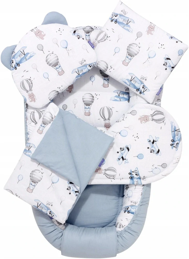 - Mušelín 5dílný set Comfort Velvet - Balloon Travel Blue