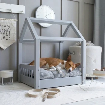 - Útulný design: Konstrukce domečku umožňuje přidání přehozu nebo látky, čímž vytváří chráněné a útulné útočiště pro vašeho mazlíčka, které nabízí větší pohodlí a pocit bezpečí.