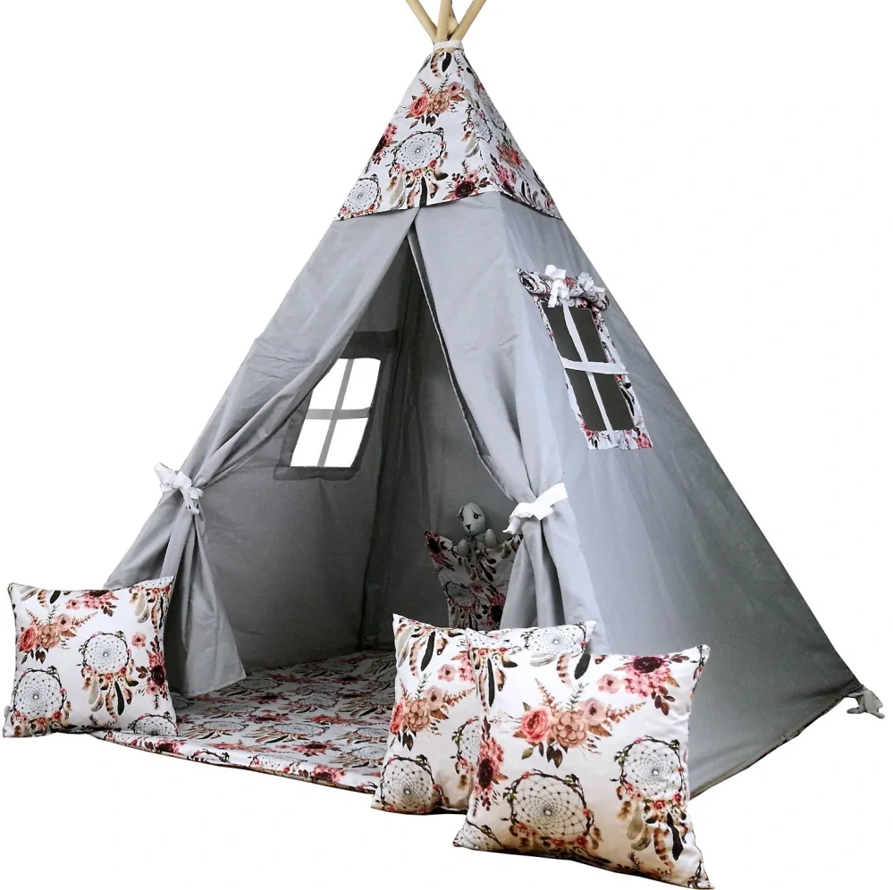Bavlněný stan TIPI pro děti se 2 okny, silnou podložkou a stabilizátorem