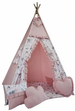 3. Stan teepee pro děti - růžová + bílé pivonky