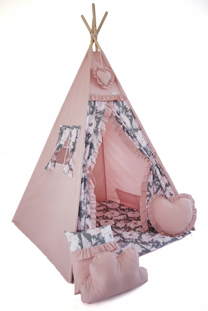 - Stan teepee pro děti - růžová + pivonky
