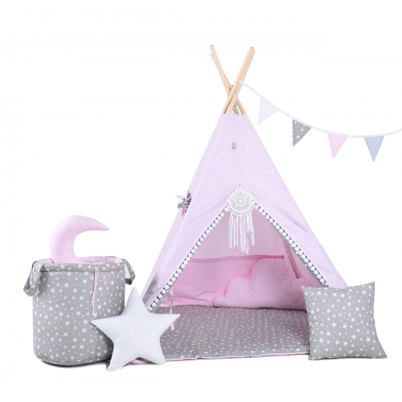 Týpí domeček se bezesporu stane jednou jednou z oblíbených her těch nejmenších. Omezený prostor stanu a příjemné vzory látek dodávají dítěti pohodlí a pocit bezpečí. Batole si dovnitř může vzít své oblíbené hračky nebo knížky a použitím dalších doplňků, jako jsou lampičky či různá světýlka, můžete uvnitř navodit příjemnou atmosféru. Děti rády používají týpí ke zklidnění před spaním. Pohodlná a měkká podložka, přivázaná k rámu bavlněnými provázky, je stabilním základem pro zcela bezpečnou hru a občas poslouží jako matrace, na které si můžete zdřímnout.